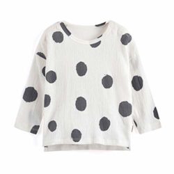Aimama Toddler Baby Long Sleeve T-Shirts Summer 100% Cotton Tee Dot Printed White Tops Clothes for 1-6Y Girls Boys
