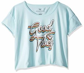 Cropped crew t-shirt for girls cut in a poly cotton viscose jersey featuring a crew neck, slim fit, shirt tail hemline, and front graphic detail Product Features Polyester viscose