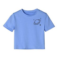 Women Teen Girl Crop Tops Cute Saturn Star Print Short Sleeve Fashion T Shirt Blouse (Blue, M)