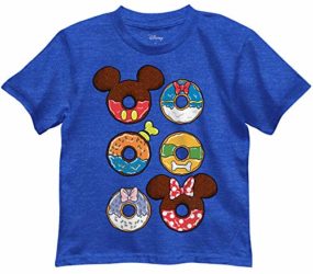 Disney Little Boys’ Mickey Mouse Goofy Donald Duck Donuts Graphic Tee T-Shirt Product Features Officially Licensed Disney T-shirt Juvy Sizing Cotton/Polyester blend