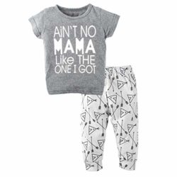 BIG ELEPHANT Baby Boys’ 2 Pieces Letters Print Short Sleeve T-Shirt Pant Clothing Set Grey K15-70(3-6 Months)