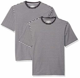An Amazon Brand – Great for layering or wearing alone, this striped 2-Pack T-shirt features a ribbed crewneck, straight hem, short sleeves, and a tag-free neck for everyday comfort