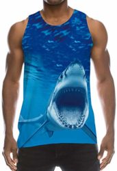 Boys Ugly Hipster Workout Tank Top Sleeveless Shirt Crazy Navy Blue Sea Shark Whale Athletic Fitting Muscular Physique Vest Classic Big and Tall Tees Wife-Beater for Adventure Race