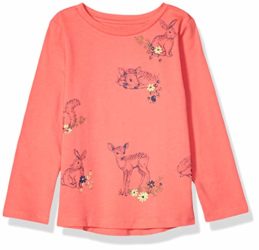 Long sleeve tee with neck tape, curved front and back hem. Forest friends screen print with on front Product Features Long sleeve tee with neck tape, curved front and