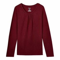 The long sleeve tee, a staple in every wardrobe. Perfect for those chilly school days. This durable tee features a comfortable poly cotton blend fabric and stylish gathers along