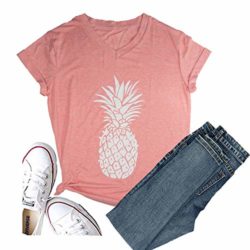 Hellopopgo Pineapple Printed Funny T Shirt Women’s Summer Tops Fruits Lover Short Sleeve Graphic Tees Tops Girl (Medium, Pink)