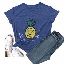 Hellopopgo Pineapple Printed Funny T Shirt Women’s Summer Tops Fruits Lover Short Sleeve Graphic Tees Tops Girl (Medium, Sky Blue)