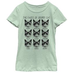 No one else has quite the poker face that Grumpy Cat does. Explore the moods of the Grumpy Cat many faces mint green t-shirt. Enthusiasts will enjoy the range