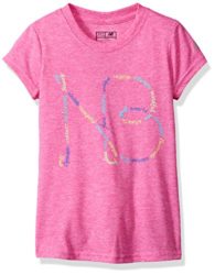 This girls’ Short sleeve graphic tee provides comfort during any activity. The relaxed fit top with dolphin hem features a chest screen print and reflective sleeve logo to elevate