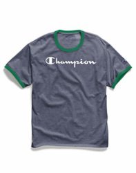 Champion Men’s Classic Jersey Graphic Ringer T-Shirt, Imperial Indigo Heather/Kelly Green, X-Large