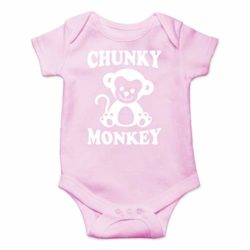 The Chunky Monkey onesie for newborns, infants, and toddlers features a witty and unique front design that is sure to give you and other adults a chuckle. As each