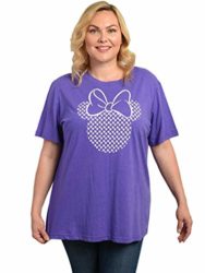 Disney plus size t-shirt with Minnie Mouse print. Graphic is one large Minnie Mouse head icon made up of smaller Minnie Mouse head icons. The soft, lightweight fabric is