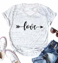 Cute Graphic Tee Shirts For Women Teen Girls Letter Print Love Tee Shirts Top Material: Cotton Blend, High QualityDesign: Cute Graphic Print, Letter Print, Short Sleeve, Loose Fit, Regular