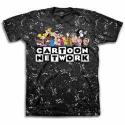 Cartoon-Network Mens Throwback Shirt – Jonny Bravo and Dexter’s Laboratory Tee – Throwback Classic T-Shirt (Black Splatter, Small)