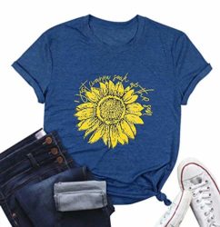 ★ Just Ray of the Sunshine Sunflower T-Shirt Women Cute Funny Graphic Tee Teen Girls Casual Short Sleeve Shirt Tops ★ Size Chart: 1 inch=2.54 cm S: Length 67