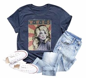 GEMLON Women Vintage Shirt Retro Graphic Tee Tops Short Sleeve Summer Casual T-Shirt Lady Outfit (Dark Blue, XL)