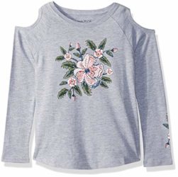 Update her wardrobe with a wide range of fashion forward graphic tees from Nautica. Product Features Long sleeve cold shoulder graphic tee Sueded puff flower artwork Round hem