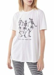 LIVE YOUR BEST LIFE Skeleton Graphic T-Shirts Women Short Sleeve Funny Novelty Tops Tees Size Information Size S: Length 66cm/26.00″; Bust 92cm/36.22″;Waist:90cm/35.43″Size M: Length