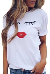 LOOKFACE Women Cotton Casual Short Sleeve Printed T-shirts.Size Chart:Small:Bust-34.6″,Length-24.8″Medium:Bust-35.4″,Length-25.6″Large:Bust-38.6″,Length-27.2″X-Large:Bust-40.9″,Length-27.6″XX-Large:Bust-42.5″,Length-28.3″NOTE:Compare the detail sizes with yours, please allow 1-3CM(1 inch=2.54cm) differs due to manual measurement.Pictures may slightly vary from actual item