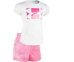 This two-piece athletic set from Under Armour comes with a logo tee and active printed shorts. Product Features Two piece set includes tee and shorts. Tee: crew neck, short