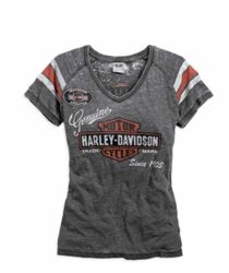 Our Genuine Oil Can Burnout Tee for women is a V-neck tee that’s the very definition of retro. Crafted from cotton polyester burnout jersey, this women’s short-sleeve top features