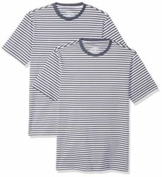 An Amazon Brand – Great for layering or wearing alone, this striped 2-Pack T-shirt features a ribbed crewneck, straight hem, short sleeves, and a tag-free neck for everyday comfort