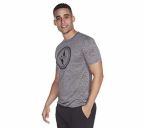 100% Polyester crew neck tee with Skechers diamond graphic on chest Product Features Diamond logo artwork Athletic fit Crew neck silhouette Moisture wicking