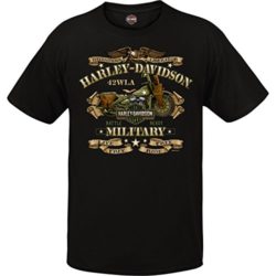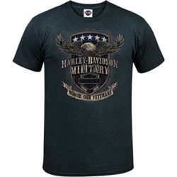 Show your support for our Veterans with our one-of-a-kind design. Men’s short-sleeve, crew-neck graphic tee. Genuine Harley-Davidson trademarked apparel with unique front and back graphics, exclusive to Harley-Davidson Military