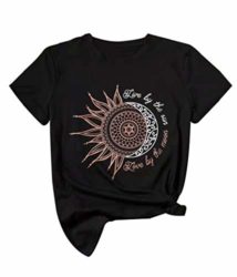Live By The Sun Love By The Moon T-Shirt Women Sun Graphic Funny Casual Tee Tops Specification: Material: Cotton BlendedColor: BlackSize Available: S, M, L, XLFeatures: Live By The