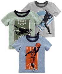 Pack of 3 three knit ringer tees in varying colors crafted in super soft snow yarn with flocked sports graphic Product Features Pack of 3 three knit graphic tees