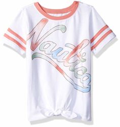 Update her wardrobe with a wide range of fashion forward graphic tees from Nautica. Product Features Short sleeve graphic tee Nautica and anchor artwork Gold foil details