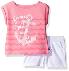 Nautica Two Piece Tee shirt set with Fashion tee and pull on shorts. Perfect fun and trendy outfit for warm weather. Product Features Tee: 60% Cotton, 40% Polyester; Short: