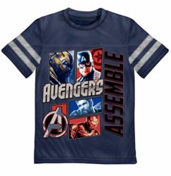 Justice League Avengers Asemble 4 Superheros Graphic T-Shirt with Striped Sleeves – Nave Blue/14/16