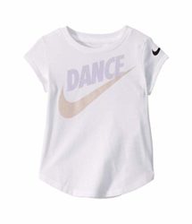 This chic Nike® Dance Logo Graphic Short Sleeve T-Shirt sports a crew neckline and classic short sleeves that will have you moving and grooving all day long! Curved hemline.