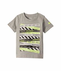 The soft cotton Nike® Kids Logo Graphic Short Sleeve T-Shirt gives him just the right blend of comfort and sporty style. Top features a crew neckline, colorful graphic on