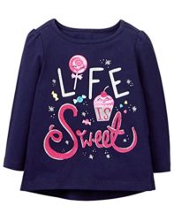 Long sleeve winter graphic tee; great winter fashion she will love to play in Product Features Features detailed screen-print with glitter Ruching detail on shoulder
