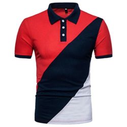 Polo Shirt, OOEOO Personality Man Casual Slim Patchwork Short Sleeve T-Shirt Top Blouse (Red, M)