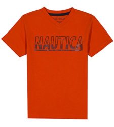 Nautica keeps his style comfortable in a classic v-neck shirt sporting classic Nautica graphics. Product Features Short sleeve V-neck tee shirt Artwork on chest