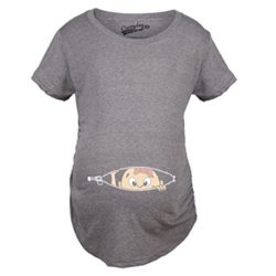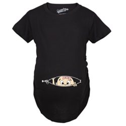 This little girl with a bow is peeking out and ready for the world! Hold up, just a little bit longer until this little girl arrives! Our maternity shirts