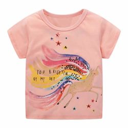 DYW Toddler Girls Short Sleeve T-Shirt Round Neck Cute Graphic Cotton Tees 2-7 Years (Light Pink-Unicorn, 4T)