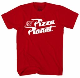 Now you can sport your very own Pizza Planet Delivery boy t-shirt. This officially licensed Toy Story tee features the Pizza Planet delivery shuttle logo on a heather red