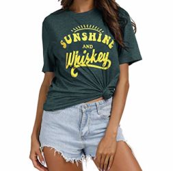 Size Chart: (1Inch=2.54cm) S—–Length 66cm/26.0″—–Bust 96cm/37.8″—–Sleeve 16cm/6.3″ M——Length 68cm/26.4″—–Bust 100cm/39.4″—–Sleeve 17cm/6.7″ L——–Length 71cm/27.9″—–Bust 104cm/40.9″—–Sleeve 18cm/7.1″ XL——-Length 73cm/28.7″—–Bust 110cm/43.3″—–Sleeve 19cm/7.5″ XXL—–Length 75cm/29.53″—–Bust 116cm/45.67″—–Sleeve 20cm/7.87″ Yellow Sunshine and Whiskey Letters show