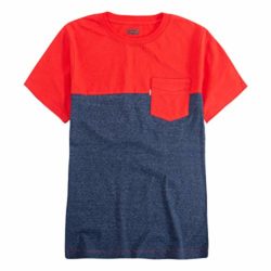 Our tees and denim were made for each other. This colorblock tee features a single chest pocket and a textural snow yarn knit. Product Features Color block t-shirt with