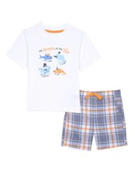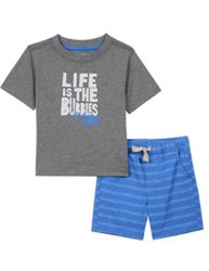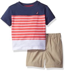 Take home this Nautica two piece set. It features a short sleeve crew neck fashion tee and fashion pull on shorts. Easy go to outfit for playtime. Product Features
