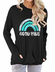 iNewbetter Women’s T Shirt Long Sleeve Blouse Good Vibes Shirts Soft Comfy Letter Print Cute Rainbow Graphic Tunic Tops with Pocket for Casual/Worl/Daily Wear Product Features Note:The A style