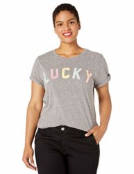 Lucky Brand Women’s Plus Size Lucky Rainbow TEE, Heather Grey, 1X