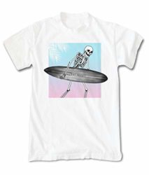 Riot Society Skeleton Surf Mens Short Sleeve Graphic T-Shirt – White, Medium