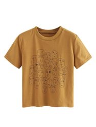 ROMWE Women’s Graphic Printed Cartoon Portrait Short Sleeve Casual T-Shirt Top Khaki Large