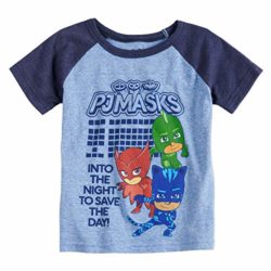 Toddler Boys Jumping Beans PJ Masks Raglan Graphic Tee Product Features Crewneck Short raglan sleeves PJ Masks Catboy, Gekko & Owlette graphics, “Into The Night To Save The Day”