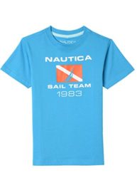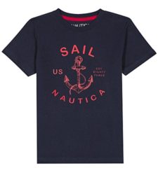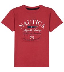Nautica keeps his style comfortable in a classic crew neck tee-shirt sporting classic Nautica graphics. Product Features Short sleeve Crew neck shirt Artwork on chest
